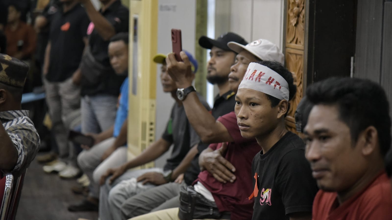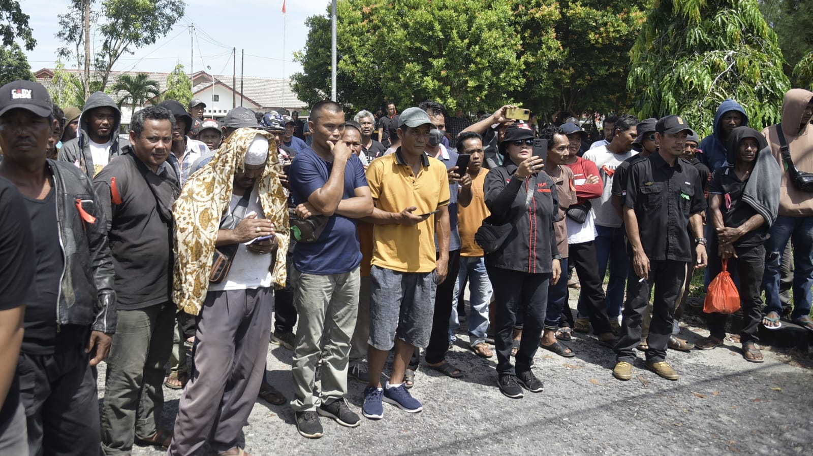 Sejumlah pendemo dari enam Kecamatan di Kabupaten Bangka Barat sedang menunggu hasil audiensi antara Forkopimda Babar bersama 60 perwakilan pendemo.