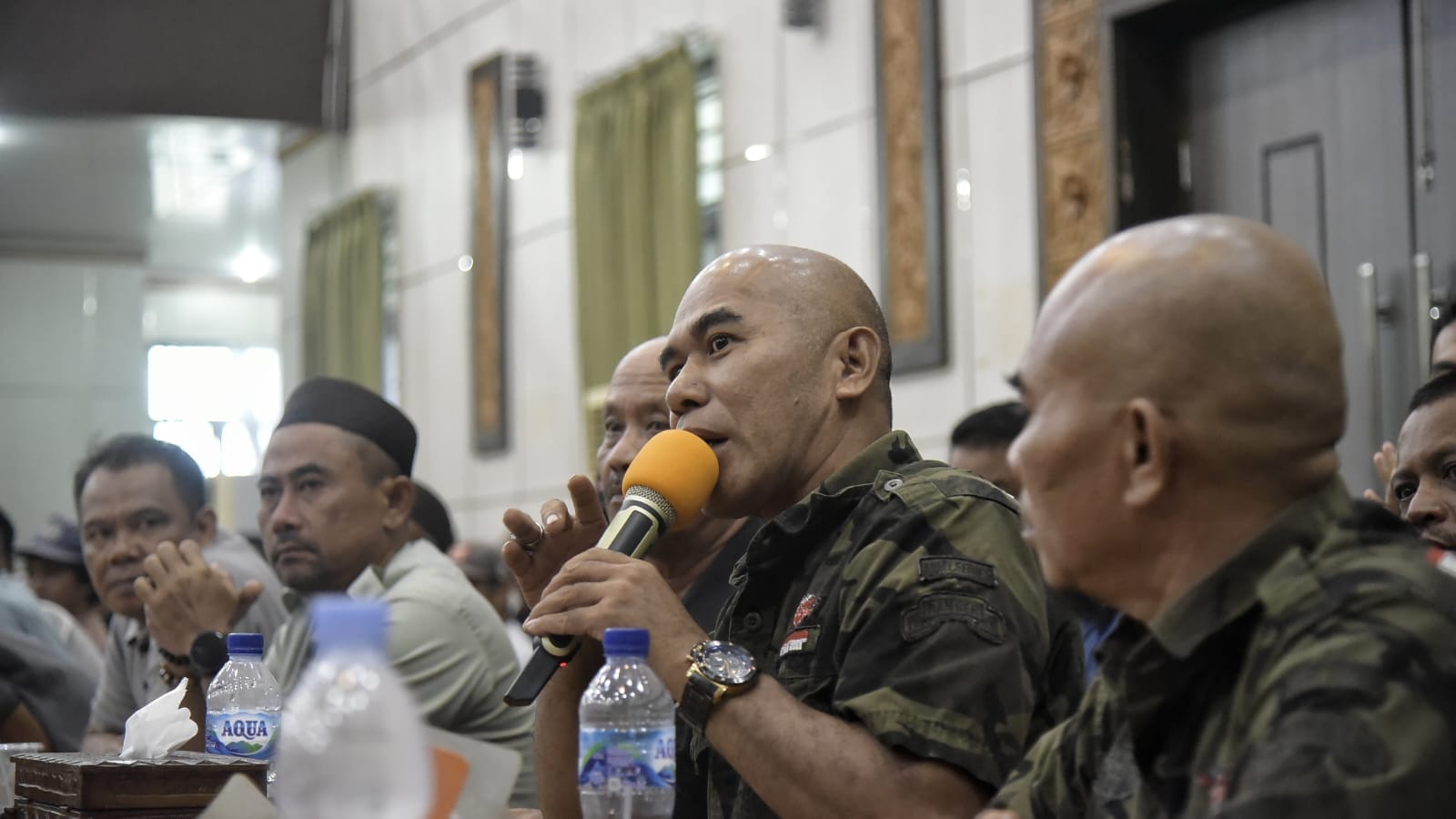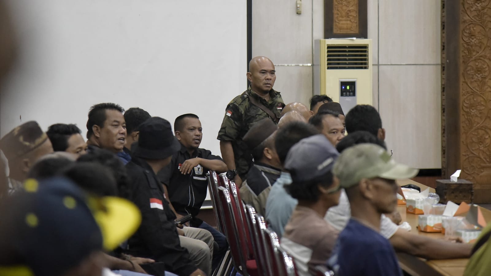 Salah satu pendemo tampak serius mendengarkan kata demi kata yang disampaikan Forkopimda Babar saat momentum audiensi.