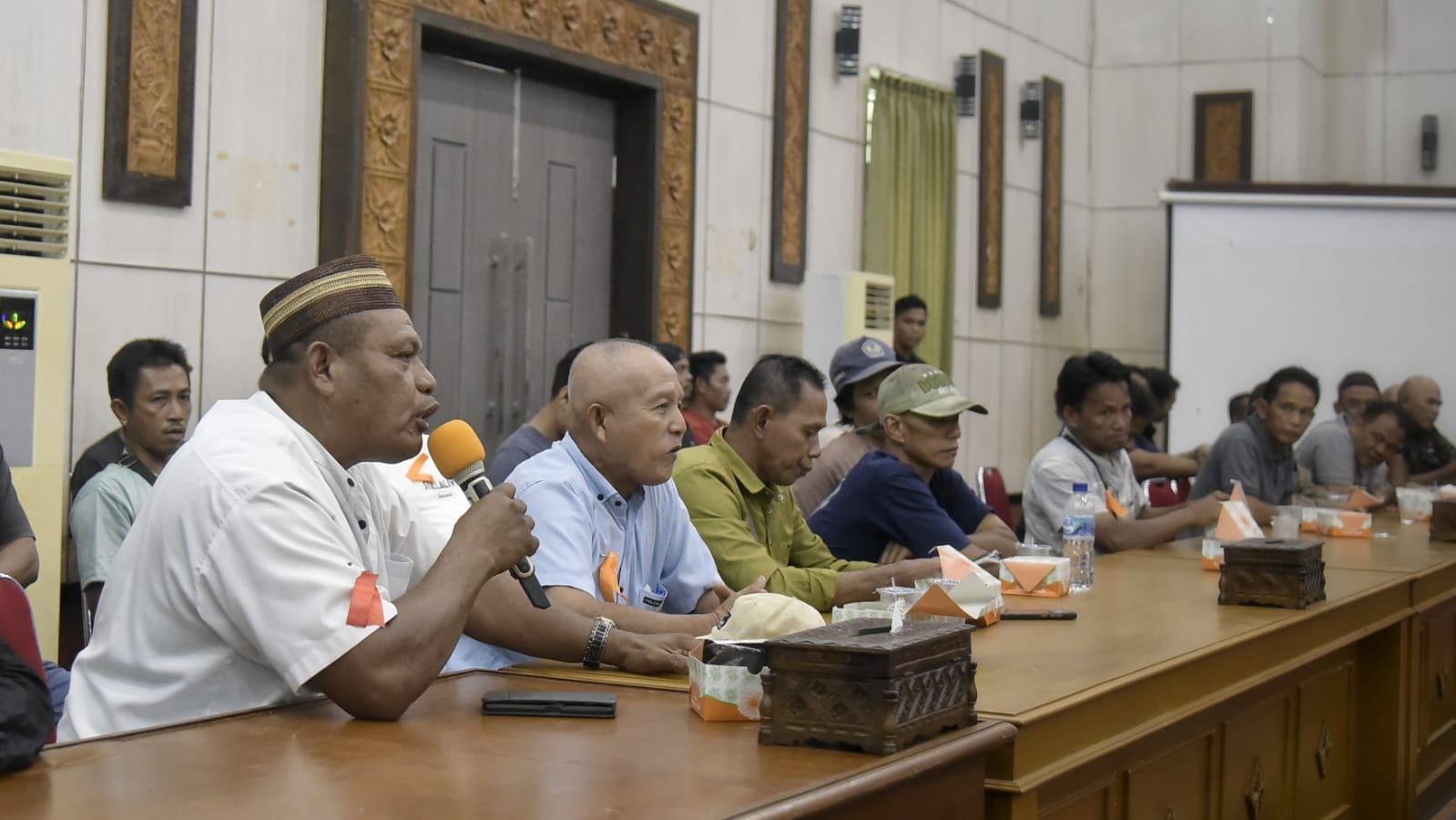 Bupati Babar Sukirman tampak ber api-api menolak Konsesi HTI PT BRS pada saat audiensi bersama perwakilan masyarakat di gedung Mahligai 2, DPRD Kab Babar.