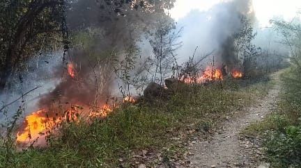 Dia menambahkan warga sekitar segera berusaha memadamkan api dengan kayu, namun api yang besar dan angin kencang membuat pihaknya sulit memadamkan api.