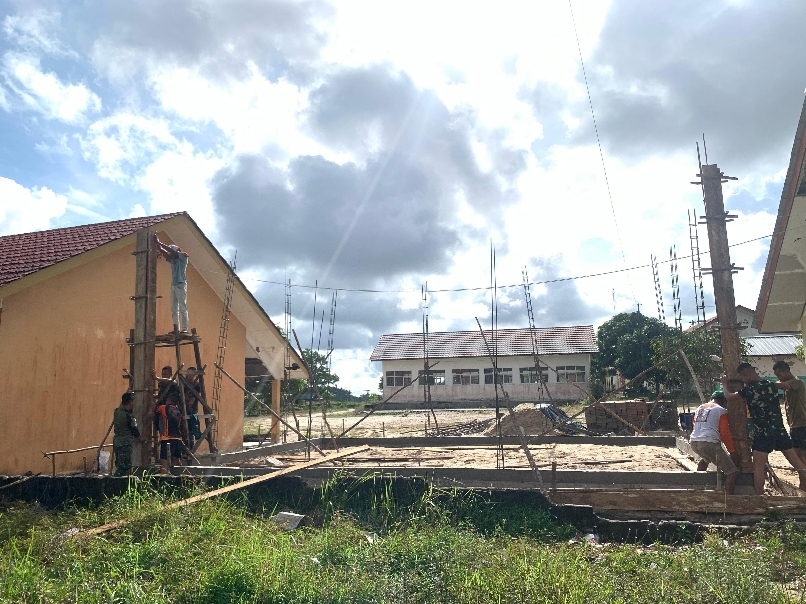 Kodim 0431/Bangka Barat Bangun Aula SMPN 3 Parittiga
