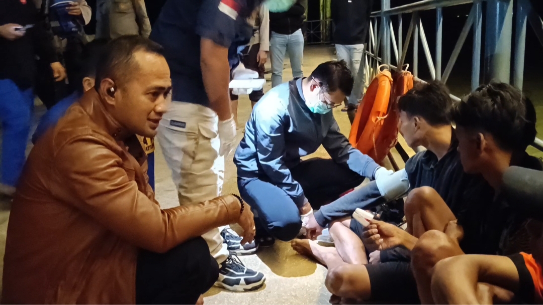 “Alhamdulillah saat ini ketiganya selamat. Begitu sampai di darat kita evakuasi ke Pos Pelayanan karena angin cukup kencang. Saat ini sedang dilakukan pemeriksaan kesehatan,” ucapnya.