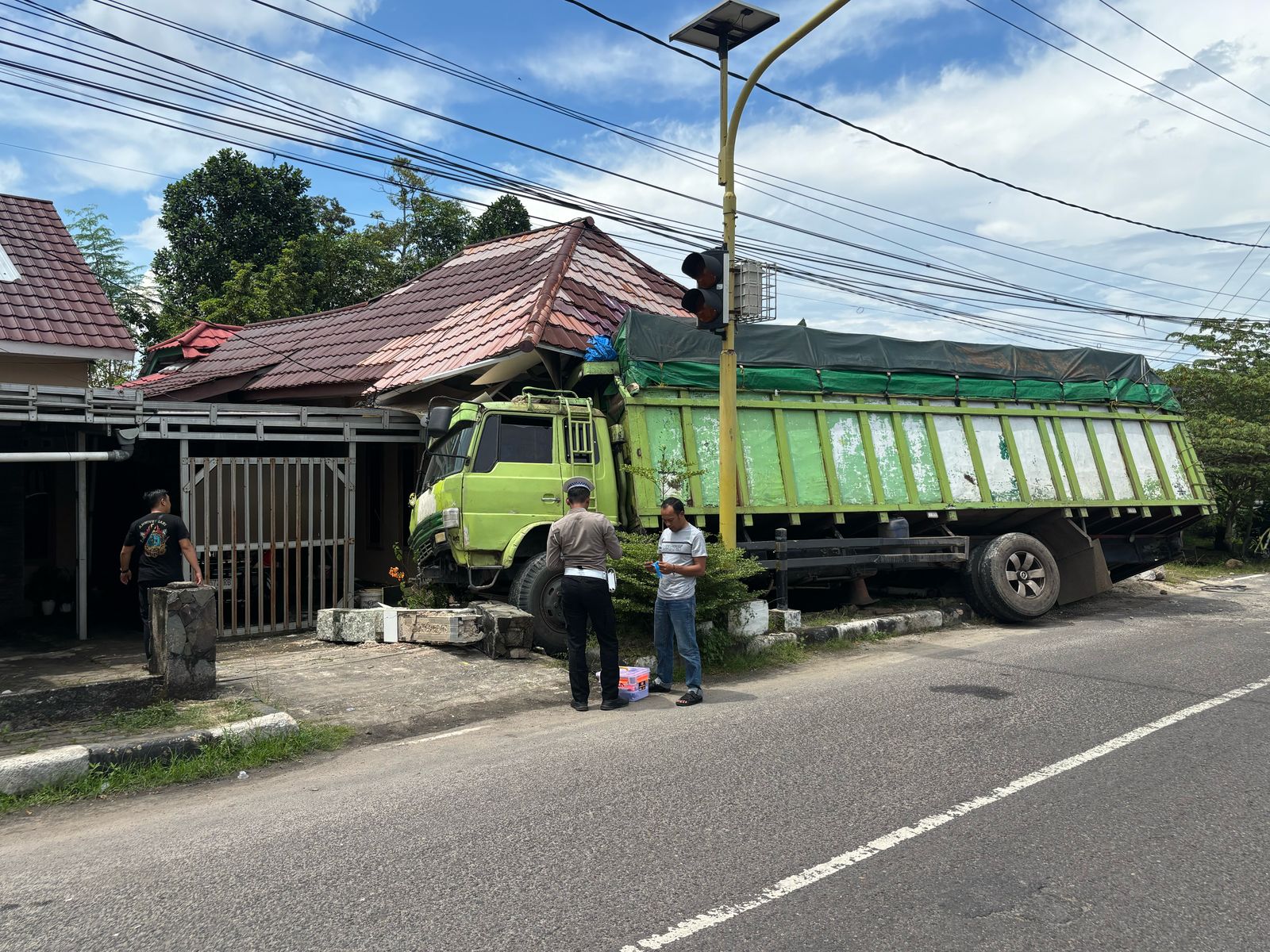 Indra, salah seorang warga mengatakan, diduga penyebab truk berwarna hijau ini menabrak rumah karena ada permasalahan di sistem pengereman kendaraan.