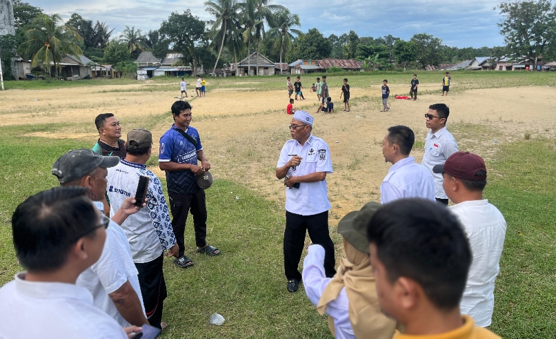 BANGKA BARAT – Wakil Bupati Bangka Barat, Yus Derahman, melakukan peninjauan langsung ke lapangan sepak bola yang berada di Desa Air Lintang, Kecamatan Tempilang.