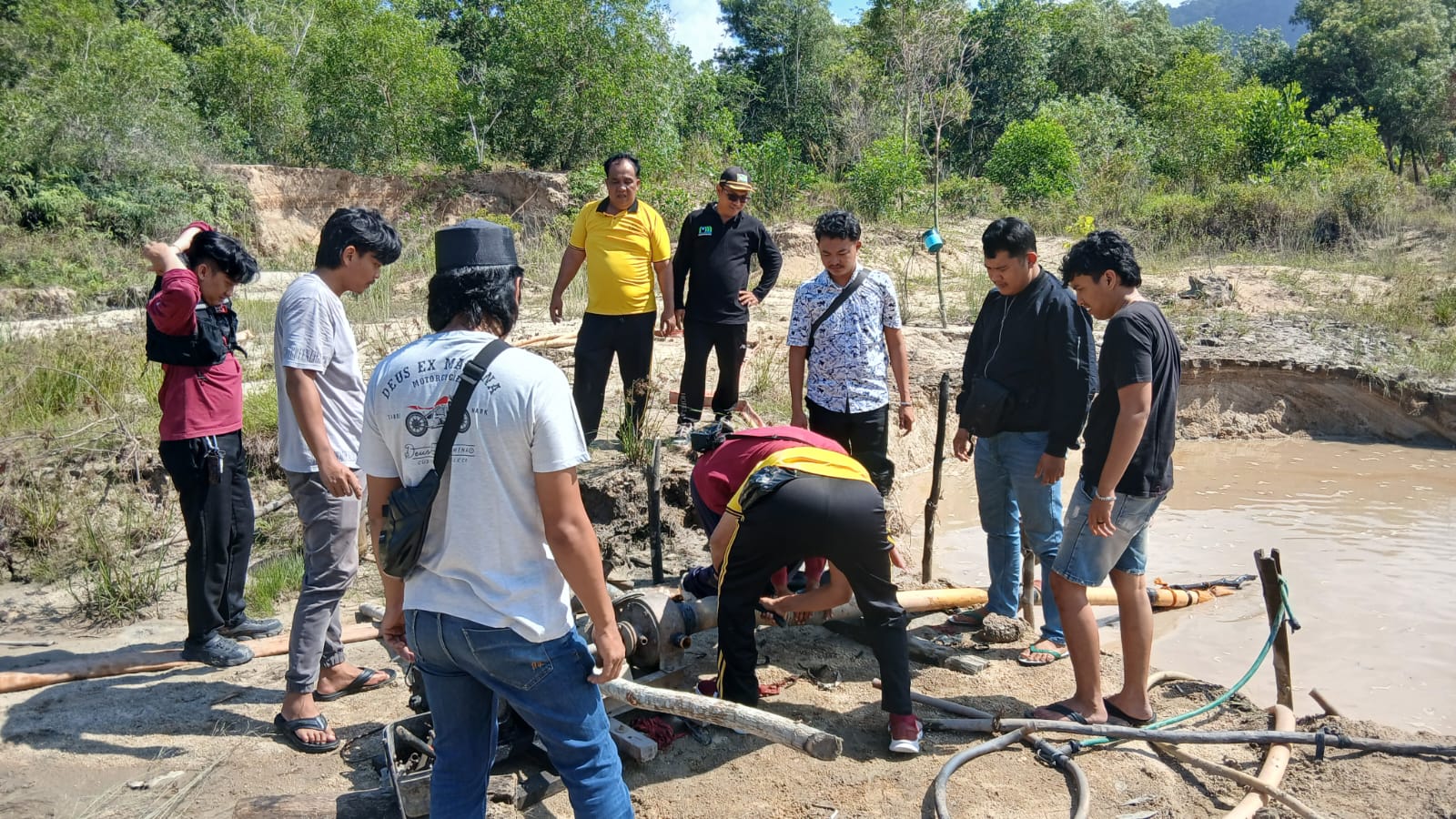 BANGKA BARAT – Aparat kepolisian menertibkan aktivitas tambang timah ilegal di aliran air Perusahaan Umum Daerah Air Minum Tirta Sejiran Setason (Perumdam TSS), Jumat (1/8/2025).