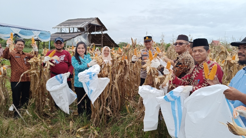 Panen jagung tersebut hasil penanaman oleh instansi terkait bersama masyarakat di lahan seluas 2 hektare dalam rangka mendukung ketahanan pangan.