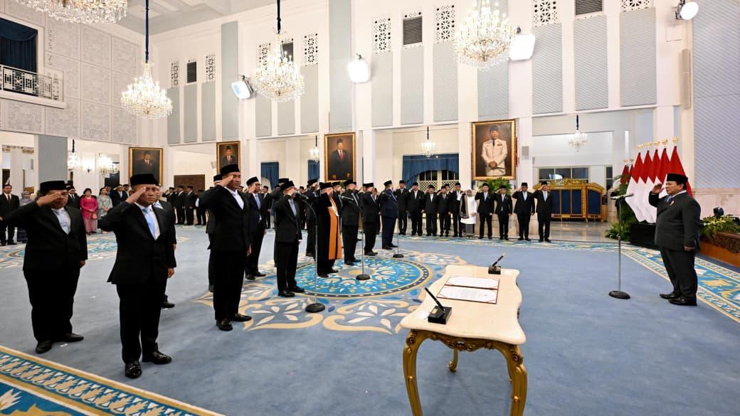Pelantikan ini ditandai dengan pengucapan sumpah jabatan menurut agama Islam, yang dipandu langsung oleh Presiden Prabowo Subianto. “Bahwa saya akan setia kepada Undang-Undang Dasar Negara Republik Indonesia Tahun 1945 serta akan menjalankan segala peraturan perundang-undangan dengan selurus-lurusnya, demi darmabakti saya kepada bangsa dan negara,” ujar Presiden Prabowo saat mendiktekan penggalan sumpah jabatan kepada pejabat yang dilantik.