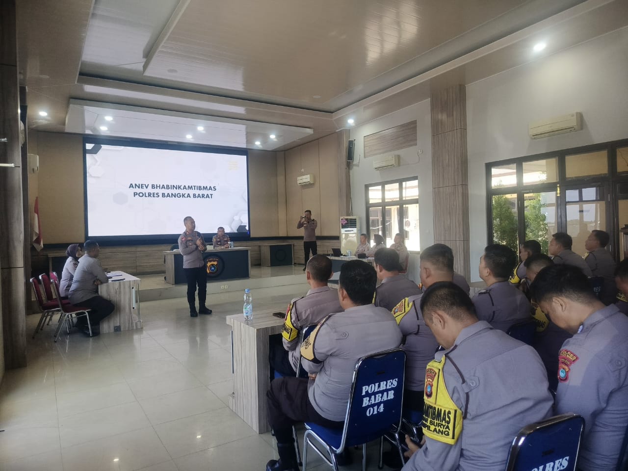 BANGKA BARAT – Kepolisian Resor (Polres) Bangka Barat melalui Satuan Binmas menggelar kegiatan Analisa dan Evaluasi (Anev) bagi seluruh Bhabinkamtibmas Polsek jajaran, yang dilaksanakan di Gedung Catur Prasetya Polres Bangka Barat pada Kamis pagi (18/9/2025).